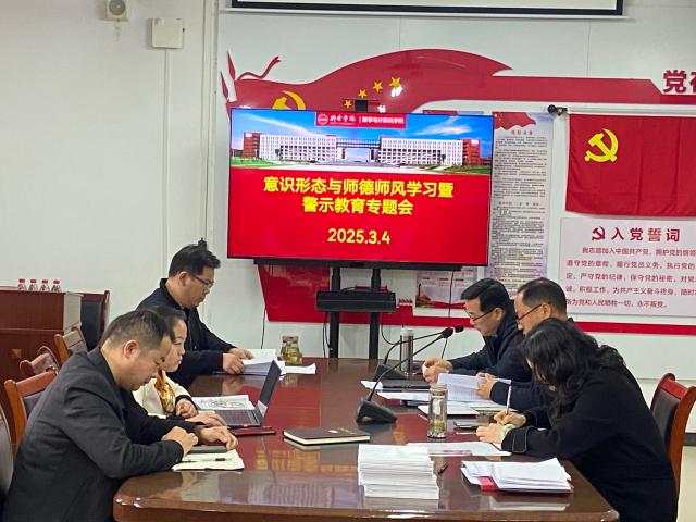 会议强调,意识形态工作是党的一项极端重要的工作,师德师风建设是高校落实立德树人根本任务的重要环节。全体教职工要提高政治站位,增强政治敏锐性,切实维护意识形态安全;要始终坚持正确政治方向、价值取向和舆论导向,引导员工树立正确的世界观、人生观和价值观;要严格守住师德底线,不触碰纪律红线,积极营造和谐稳定的学院发展环境。