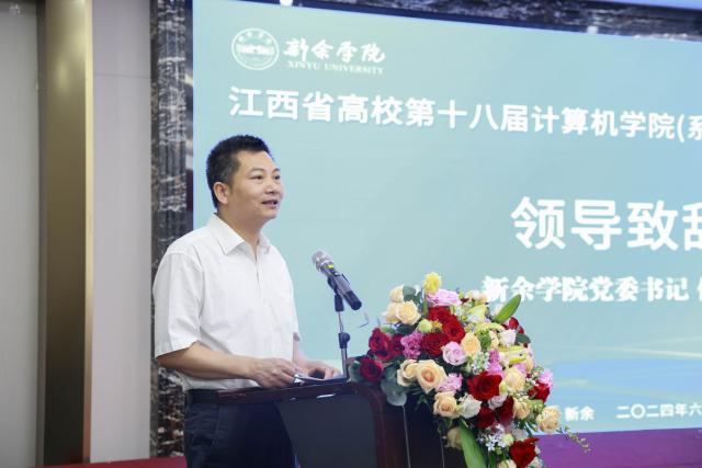 贺利华代表新余市政府,对会议的召开表示热烈祝贺,并对来自全国各地的专家学者、企业代表致以诚挚欢迎。他指出,新余市政府高度重视信息技术发展,紧跟国家战略,积极布局,致力于推动经济社会数字化转型,打造数字经济创新高地,推进智慧城市新型基础设施建设,并已取得了显著成绩。他希望,通过本次会议,进一步加深各高校、企业间的交流合作,共同在大数据、人工智能等方面开展紧密合作,资源共享、优势互补,共同推动江西高校计算机学科的发展,为新余市乃至全省信息技术产业发展贡献智慧和力量。
