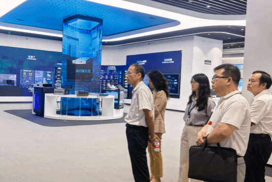 在新华三集团杭州总部,陈裕先一行参观并详细了解企业在助力数字政府、智慧教育等数字化转型取得的成效。